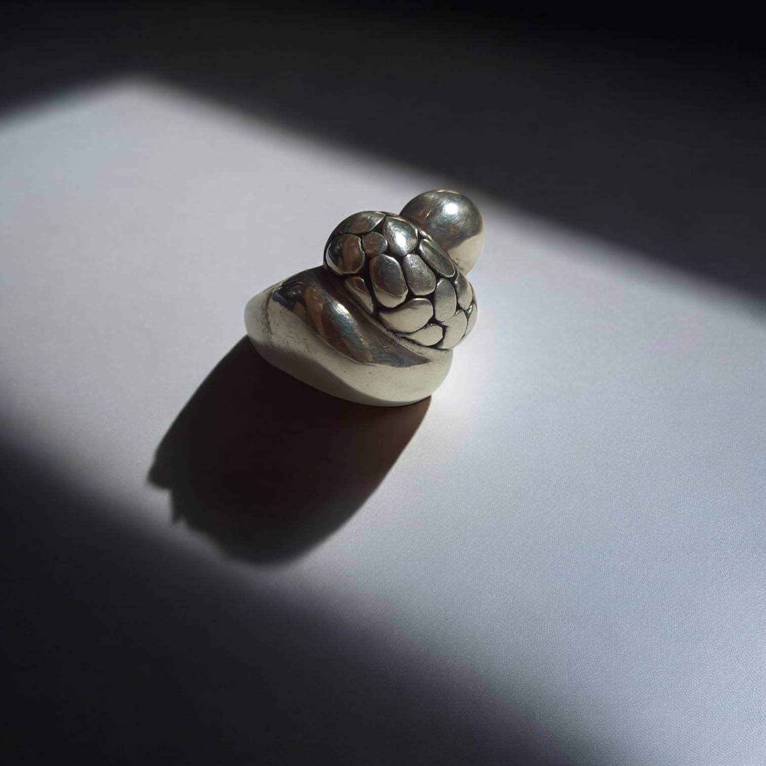 Este anillo captura la dualidad de la oscuridad y la luz, el invierno y el renacimiento. Una joya que simboliza los ciclos de la vida, la transformación y la belleza que emerge tras los periodos de quietud.
